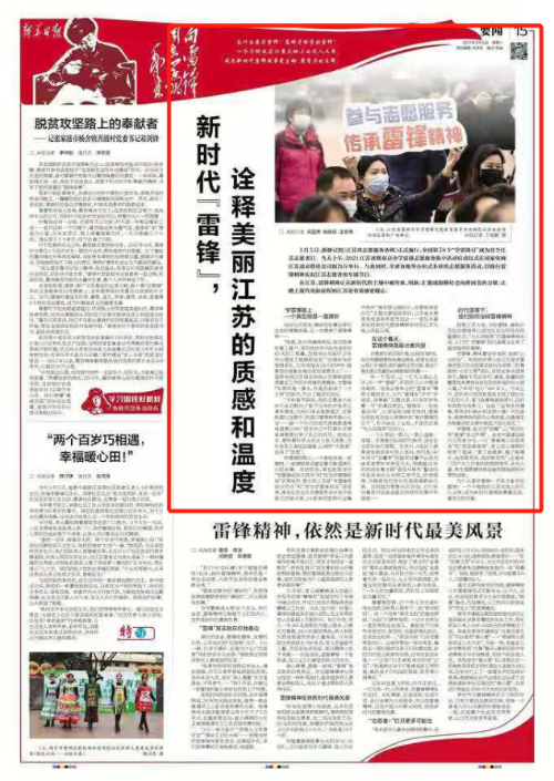 在江蘇,雷鋒精神正在新時(shí)代的土壤中被傳承、創(chuàng)新,匯聚成助推社會(huì)向善向美的力量,讓踏上現(xiàn)代化新征程的江蘇更有質(zhì)感更暖心。
