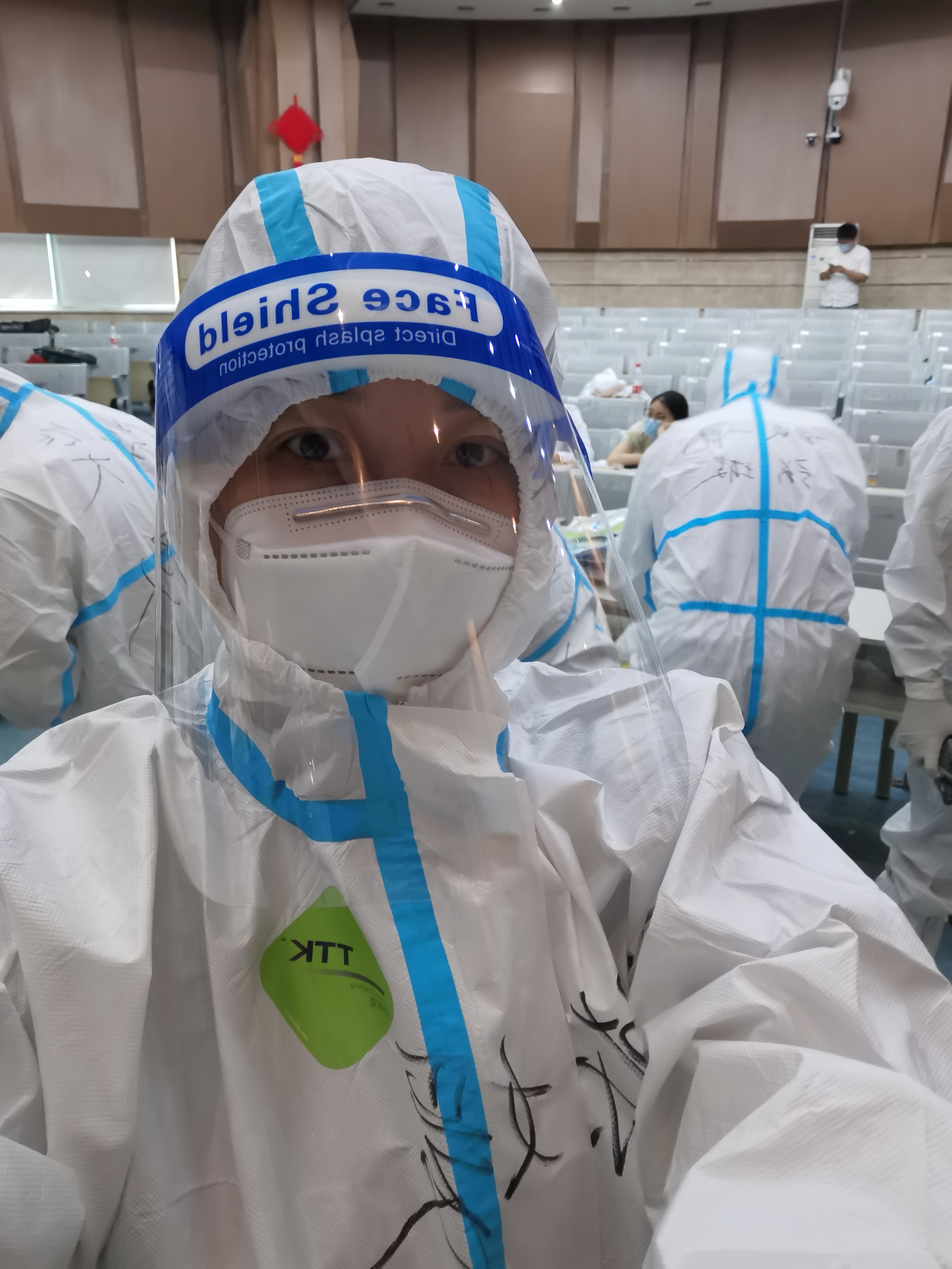 陳媛,黨支部副書記,疫情爆發(fā)以來(lái),多次助力醫(yī)護(hù)人員參與核酸檢測(cè)。為節(jié)省一套防護(hù)服,連著兩個(gè)班次不換崗,不肯下來(lái)休息,每檢測(cè)一人,除做好系統(tǒng)登記、核對(duì)人員,還要提醒來(lái)檢人員配合動(dòng)作,以保障標(biāo)本采集的精準(zhǔn)和有效。