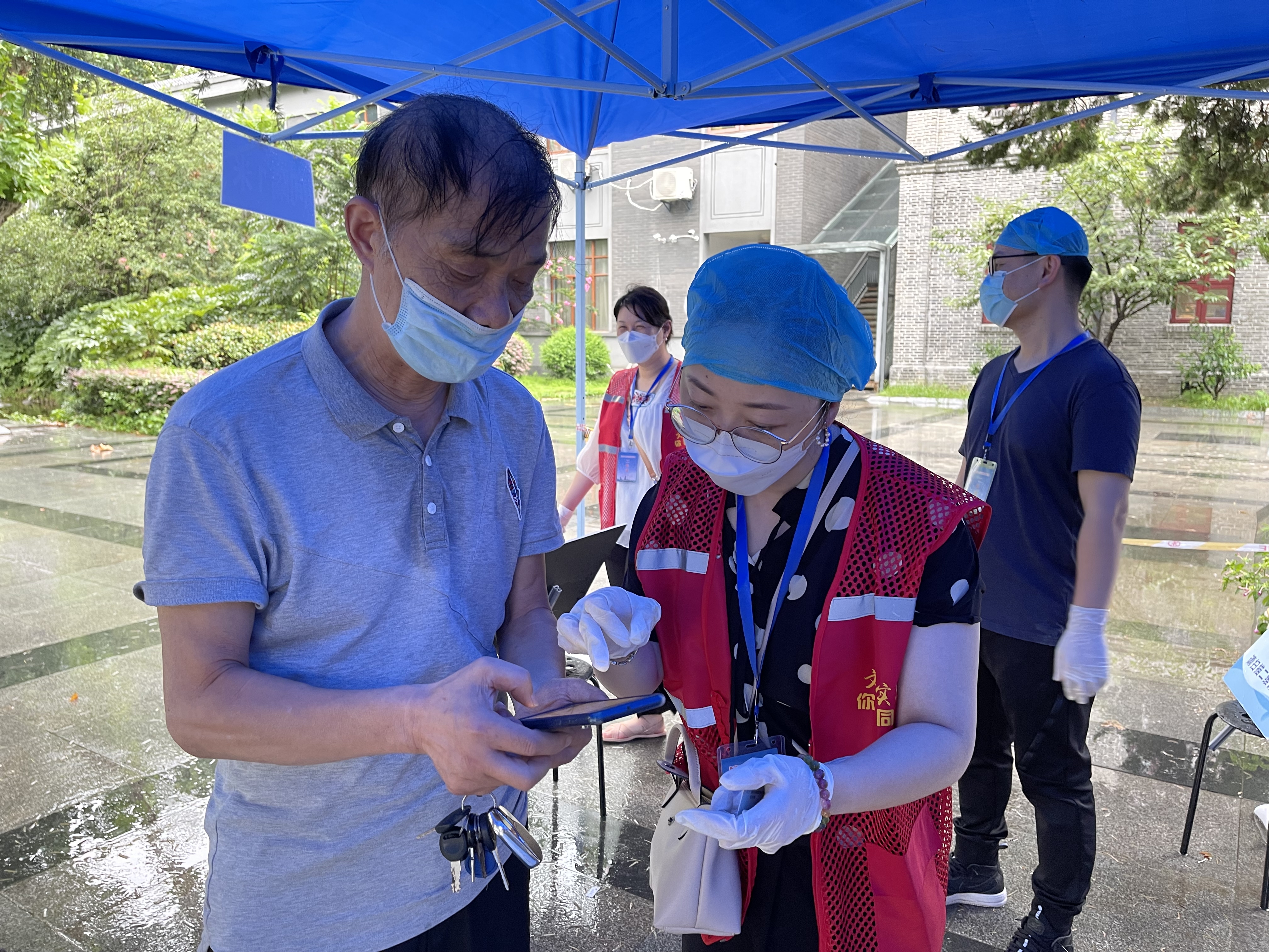 王卉,黨小組組長(zhǎng),在參加防疫工作時(shí),她的腿部手術(shù)才做完沒(méi)多久,行走、長(zhǎng)時(shí)間站立都還很吃力的情況下,她仍帶著部門黨員夏瑋冒雨參加志愿服務(wù),在核酸采集點(diǎn)維持秩序、答疑解惑,安撫等候人員焦慮與不安,提醒人員注意安全防護(hù)